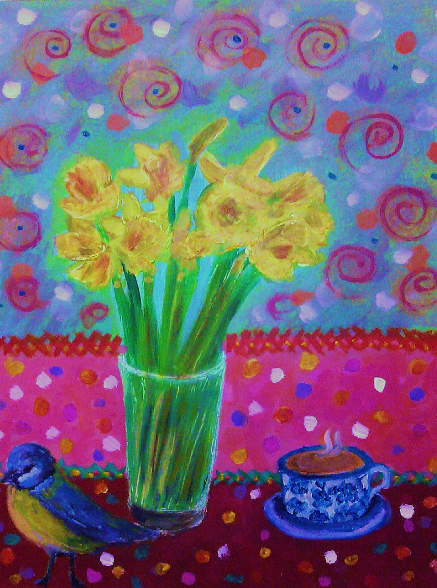 My artwork tends to focus on people and also places that I have visited that have a particular resonance for me; it may be that the weather totally transformed the location, or made it appear dismal with overcast skies. This is what inspires me to want to recreate or give an impression of what I have experienced from a day out. I like to have contrasts in my work, particularly the use of tonal values and colour has always been very important to me. I feel my style is continually developing and evolving, and I am most interested in experimenting more with abstraction, because I love colour and the negative shapes that objects make.
